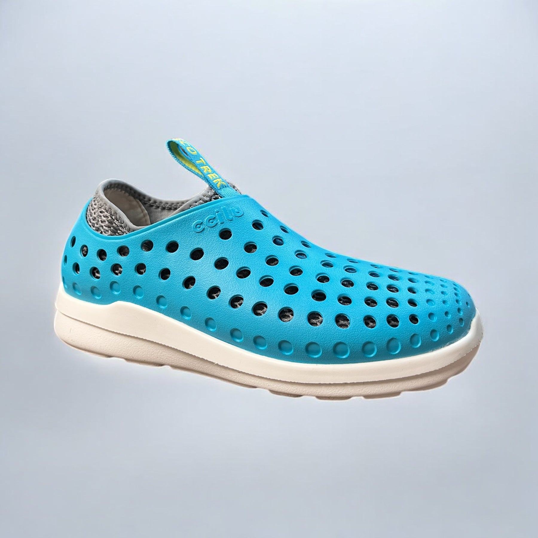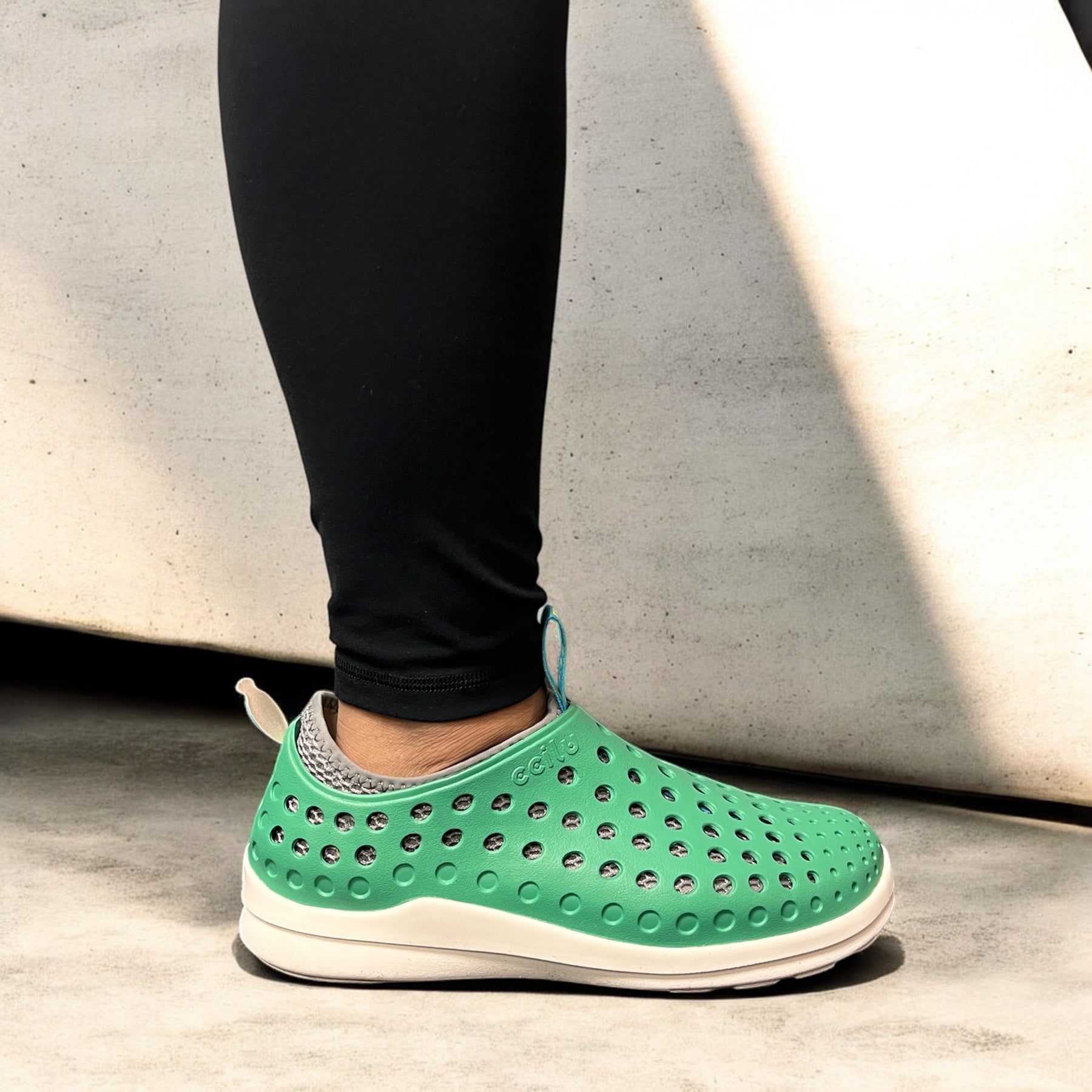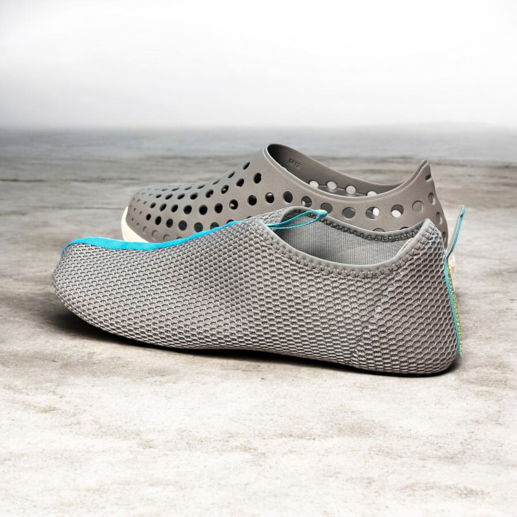 • Sustainable Footwear: Made from upcycled plastic bottles and fish scales