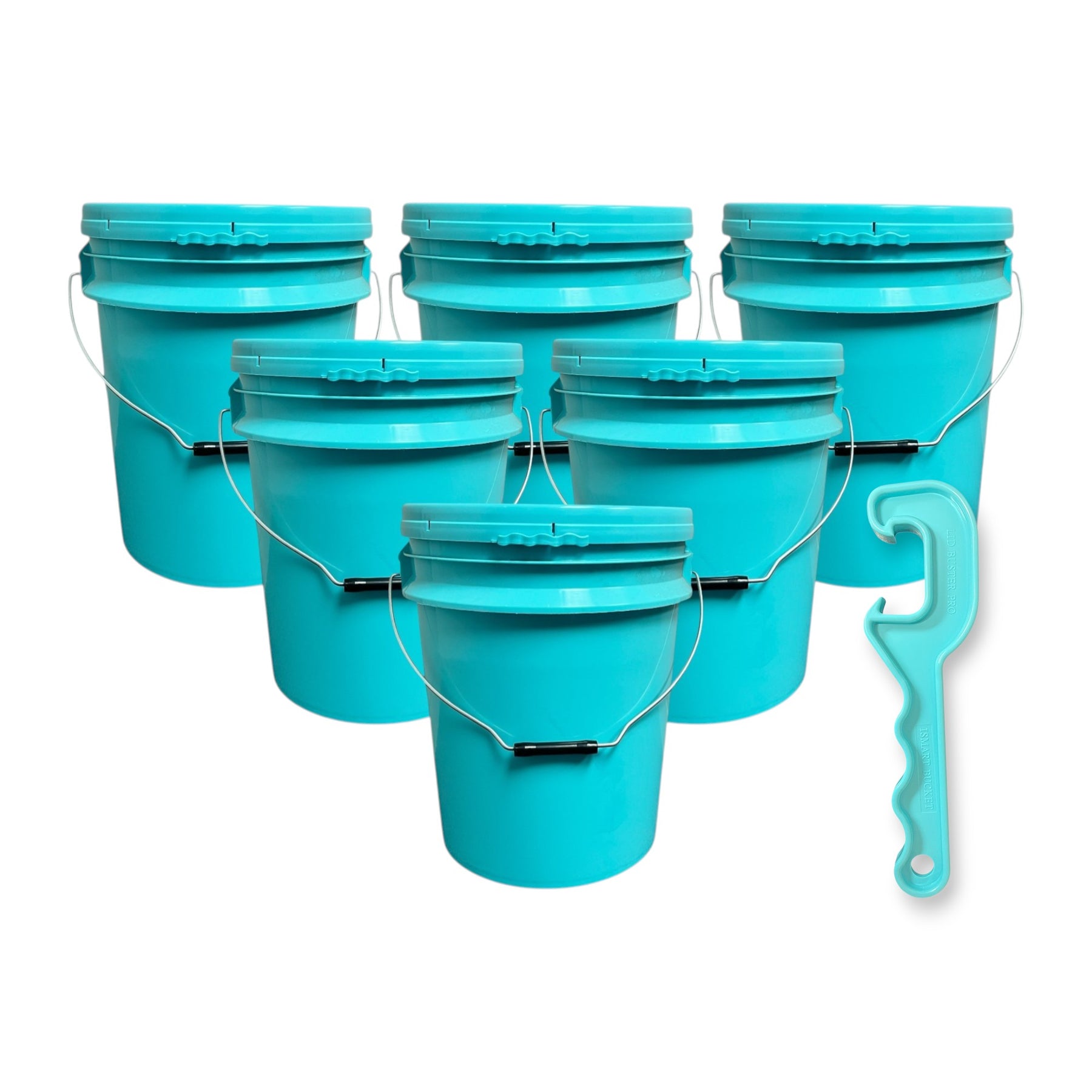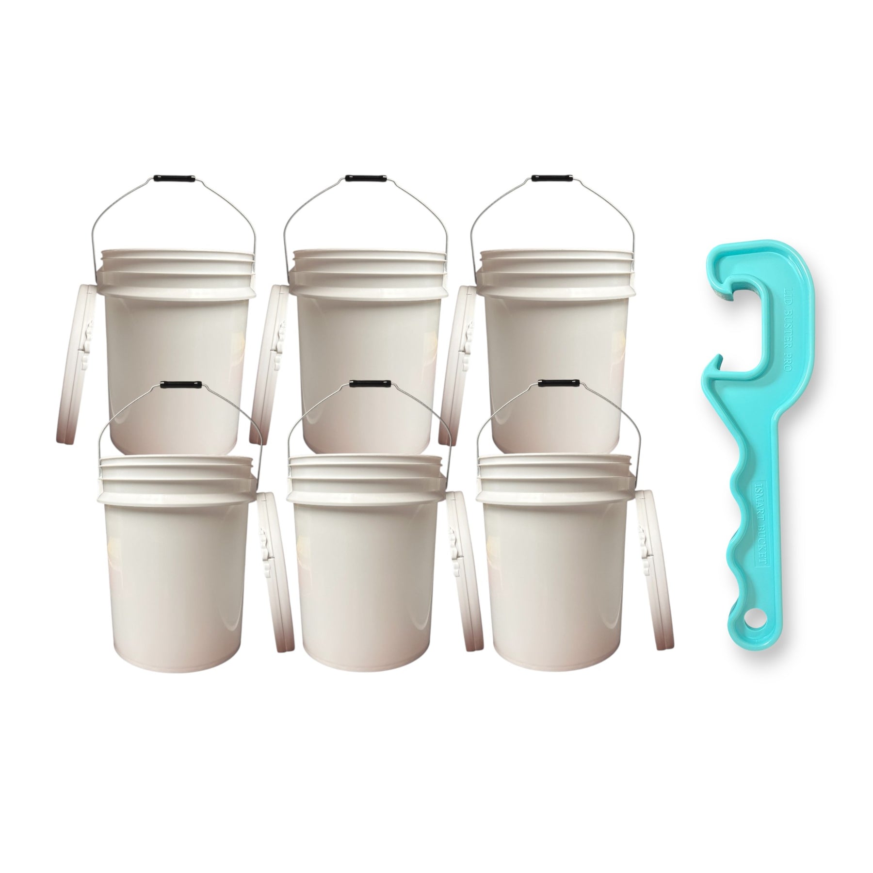 6-Pack Buckets with Lids + Bonus Bucket Opener Tool Included